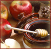 In a large kettle or Dutch oven, combine the sugar, water, honey, cinnamon, food coloring, and raisins; bring to a boil. Peel and core the apples; add to the pan. Cover and simmer in the hot syrup until tender, about 20 minutes. Place apples in dish with sides, for serving, using a slotted spoon to spoon raisins in center of each apple. Pour syrup over all.